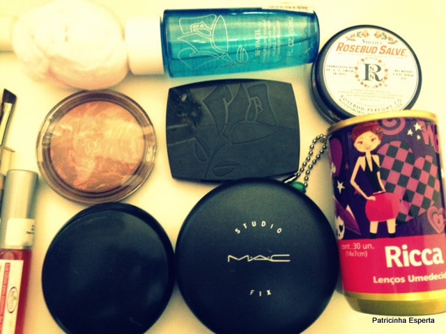 Como demaquilante uso os lenços umedecidos da Ricca, que vêm num potinho fofo. Não é o ideal, mas é fácil e prático de usar.