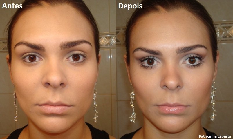 Vocês conseguem perceber como o olho fica mais profundo e desinchado?! As fotos foram tiradas antes e depois da maquiagem.