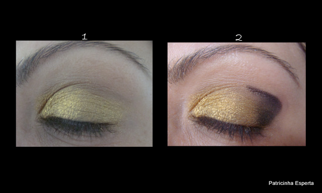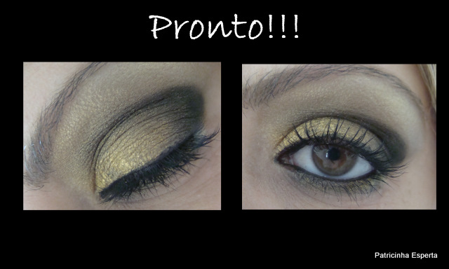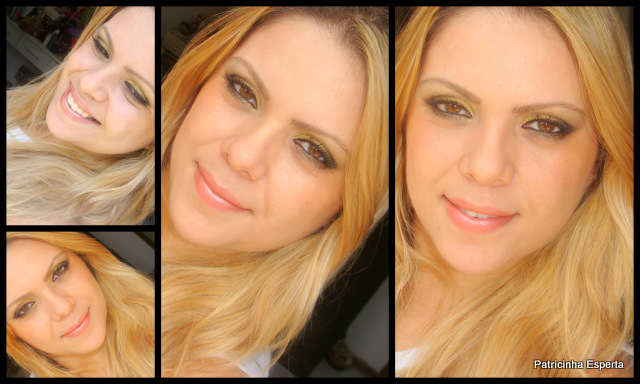 Muitas de vocês vivem dizendo que se atrapalham nas sombras e não conseguem fazer um make mais caprichado, então pensei um um dourado facinho, já que dourado é básico e vai bem com todas as tonalidades de pele.