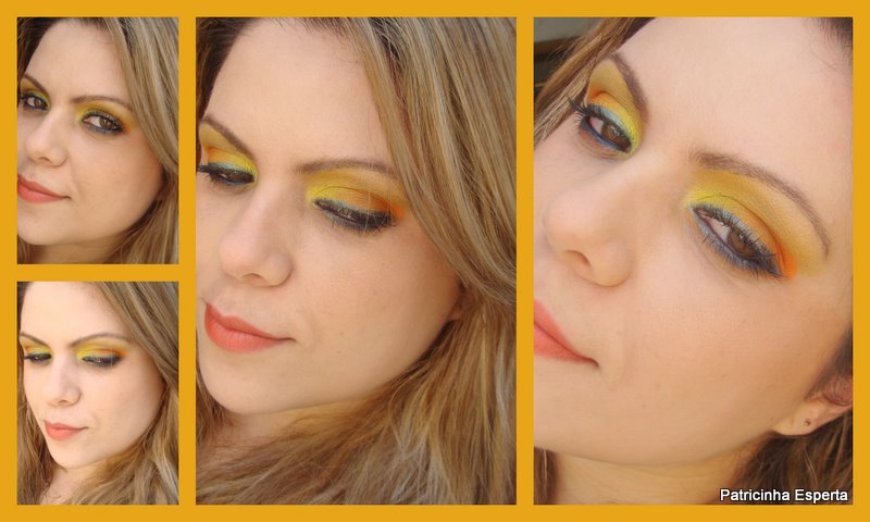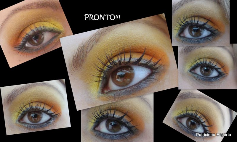 Meninas, uma gema de ovo, como eu, pintar os olhos de amarelo é muito amor, viu? Mas eu prometi, então tem que cumprir, né? Por incrível que pareça, achei a misturinha de amarelo com laranja linda, mas com certeza é um make que fica muito mais bonito nas morenas e negras.