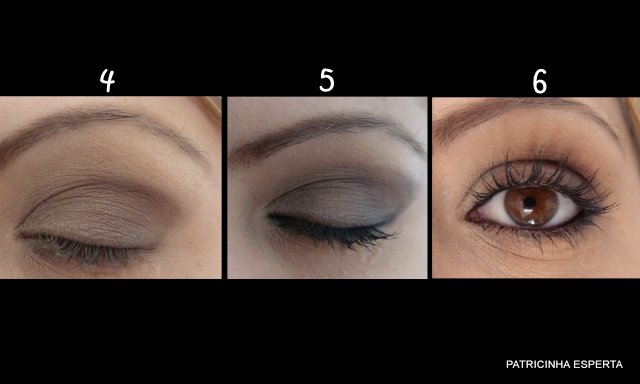 Sujo o pincel de sombra, da Avon, na sombra marrom escura e passo no canto externo puxando para o centro do olho ( foto 4). Uso delineador líquido para delinear a raiz dos cílios superiores ( foto 5). O traço aqui é bem fino mesmo, tanto que nem parece que ele está ali,  e serve para dar mais destaque aos olhos.