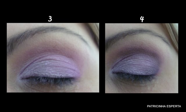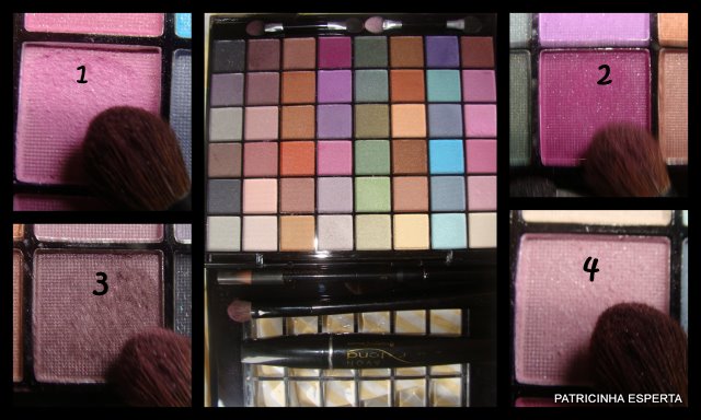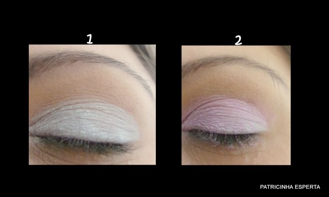 Por cima da base branca usei uma sombra rosa clara mais acesa, que é a número 1 ( foto 2).