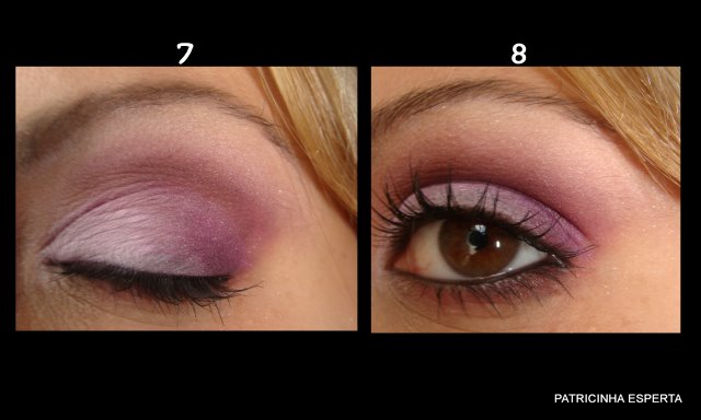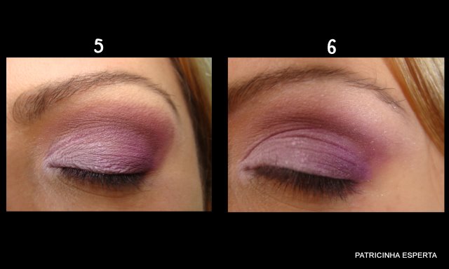 Por cima do marrom passei novamente a sombra rosa fechada tanto no côncavo quanto no canto externo, puxando um pouco para fora do olho (foto 5).