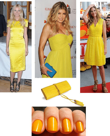 O amarelo canário também arrasa nos acessórios e sapatos, bolsas, cintos, pulseiras, lenços, colares, sem falar nos biquínis, pois o amarelo combina muito com o bronzeado. Lembrando que o esmalte e a maquiagem nesse tom também será bem recebido nessa tendência atual.