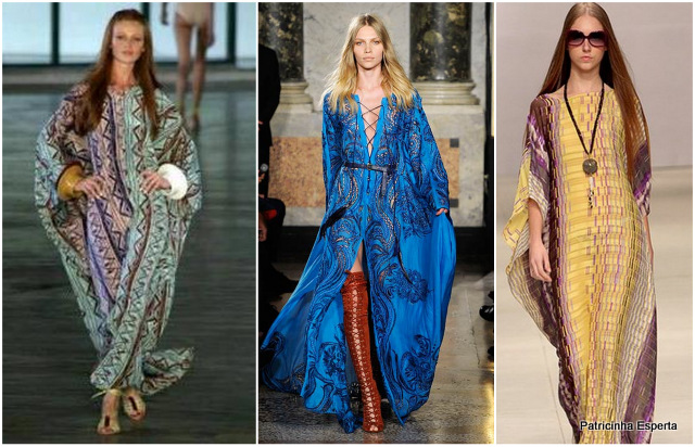 Se antes só se usava a seda, hoje o caftã é feito dos mais diversos tecidos, tanto longo, quanto curto, com ou sem amarrações na cintura.