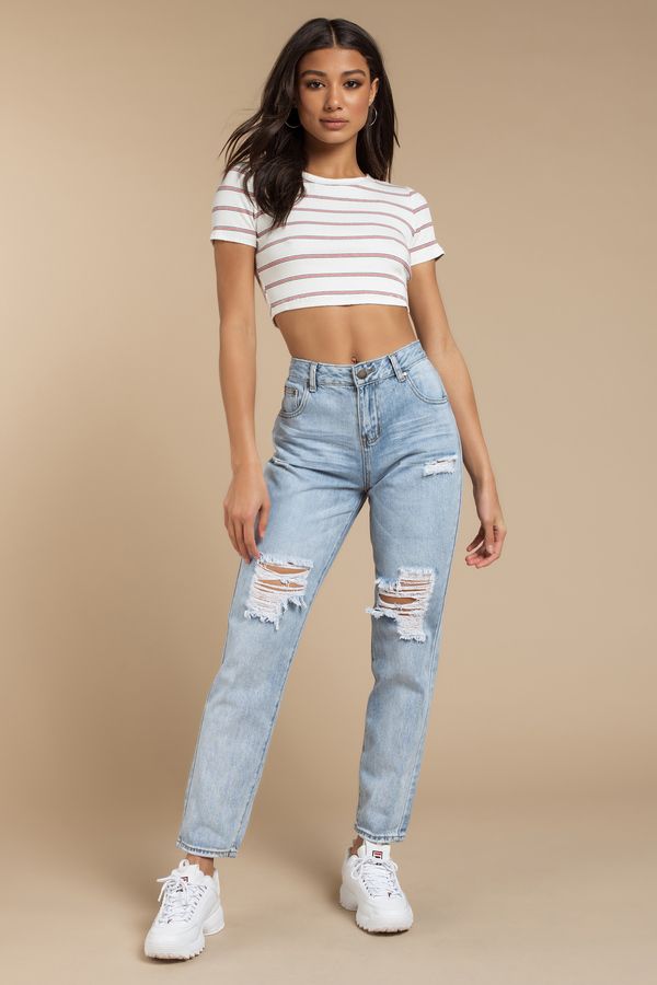 As calças boyfriend no geral são mais largas, então combiná-las com uma blusa mais justa ajuda a criar uma aparência equilibrada. Experimente uma camiseta regata ou uma blusa justa.