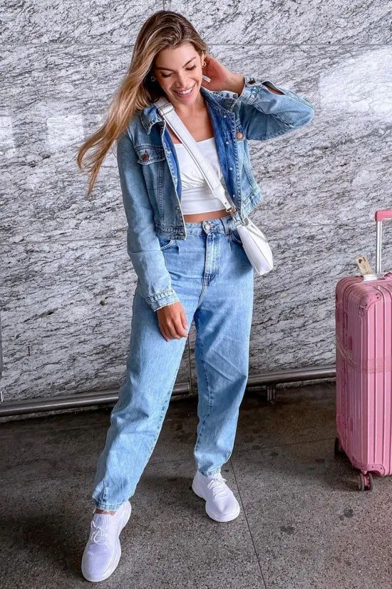 Para um look casual, use com tênis e uma jaqueta jeans.