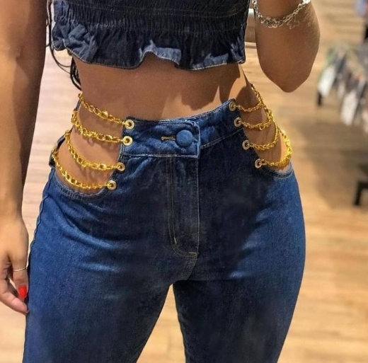 # Inclusive, a calça com corrente mais fina garante um visual mais discreto, elegante e delicado