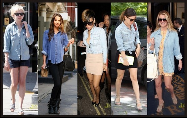 A camisa jeans saiu direto da década de 90 e veio dar o ar da graça no mundo fashion atual. Item mais democrático que esse é difícil ver e olha que ela chegou com cara de que iria só dar uma passadinha e foi ganhando destaque por conta da versatilidade que o tecido oferece. Assim como as calças que nunca saem do armário, no frio, no calor ou em qualquer estação, elas estão sempre a postos. Quem achou que essa moda era passageira, se enganou. A cada dia a camisa jeans demonstra que veio para ficar e conquistou o merecido espaço no guarda roupa da mulher moderna.