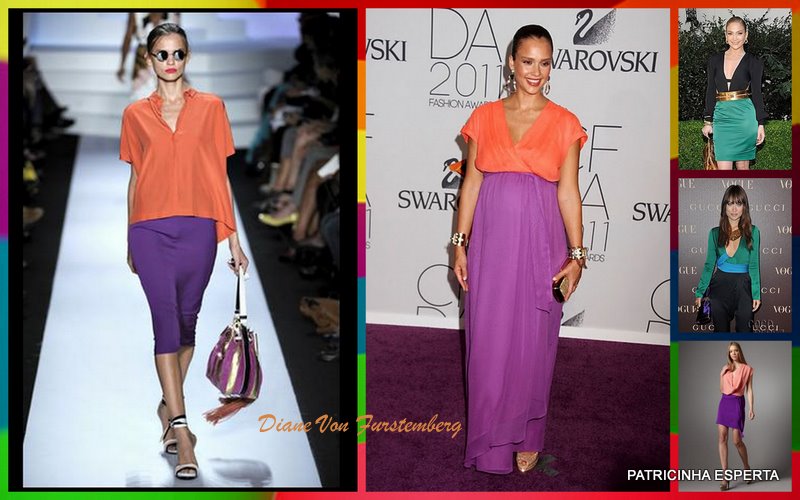 Gosto também da forma como a Diane Von furstenberg ( é com “n” mesmo gente…) mistura as cores, sempre usando cores opostas ou análogas ( que são as cores que são “vizinhas”) juntas.