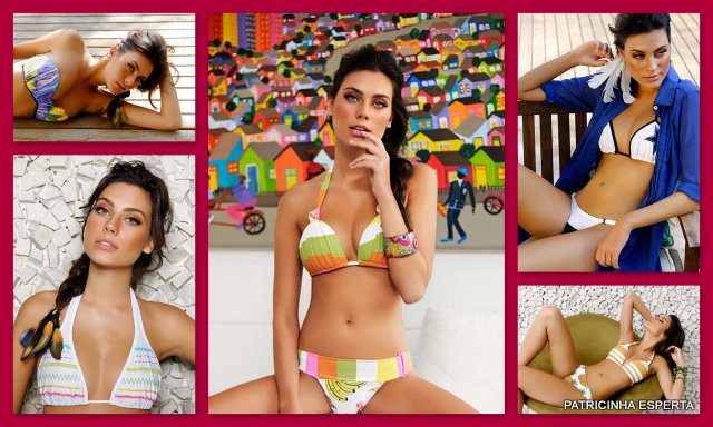 Nada que acrescente volume deve ser utilizado na parte de cima, inclusive os bojos. Assim, deixem os detalhes chamativos, bem como os coloridos e cores vibrantes, para a parte de baixo do biquíni, pois assim o olhar é desviado do busto.