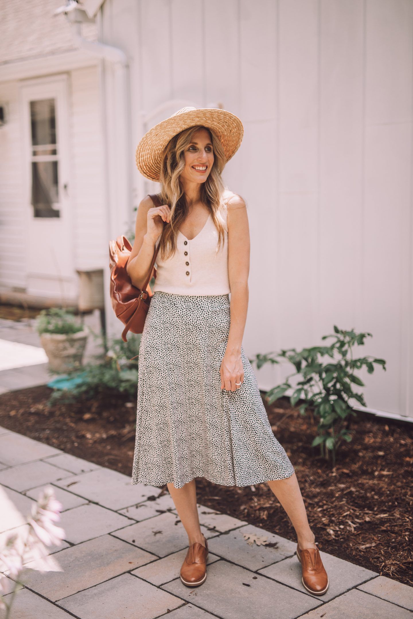 Um look clássico e atemporal, combinar uma saia longa com sapatos oxford é perfeito para o trabalho ou para uma ocasião mais formal.