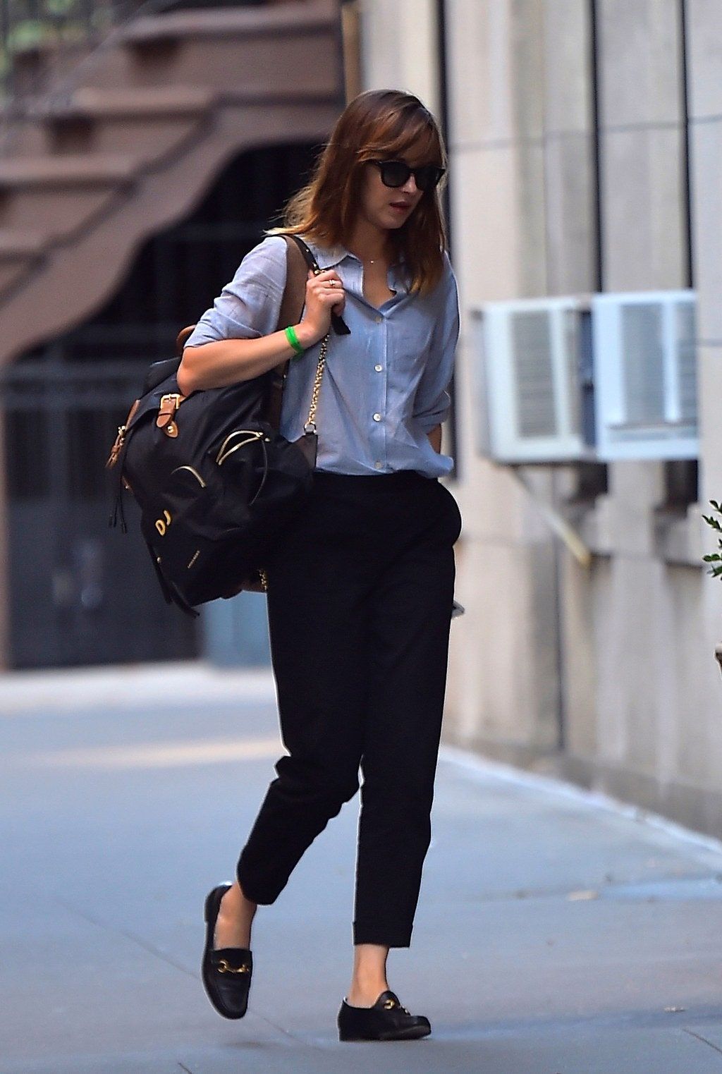 Com calças justas: