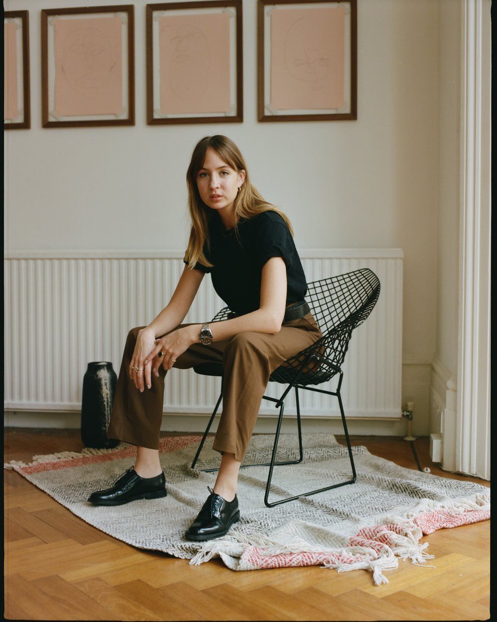 Calças justas e sapatos Oxford são uma ótima maneira de se manter aquecido e ainda ter uma aparência elegante. Essa combinação pode ser usada em várias ocasiões, incluindo trabalho, escola ou até mesmo para fazer recados.