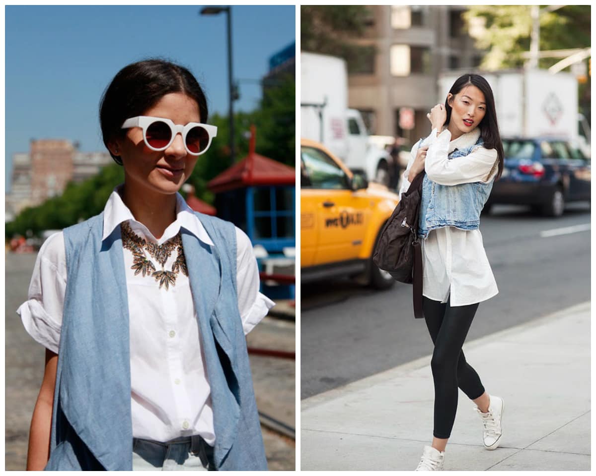 Camisa branca + colete jeans