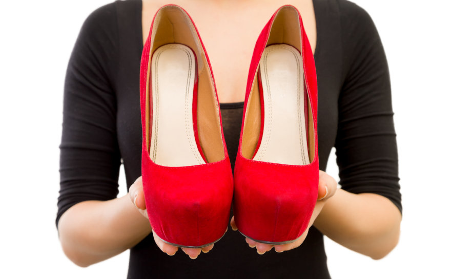- Também é importante testar para que o salto fique em uma altura confortável. Fique em pé com os sapatos, mantenha os joelhos retos. Agora tente levantar-se em seus calcanhares… Se você não conseguir fazer isso, os saltos são muito altos, e você não deve usá-los; você vai acabar andando com os joelhos dobrados, e isso vai ficar estranhíssimo.