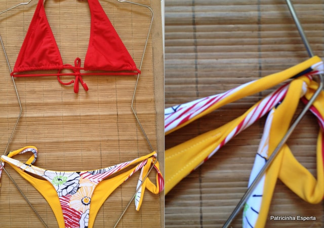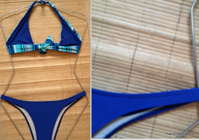 Esse primeiro biquíni, que é da Boto Rosa, tem um tecido molinho, mas não tanto quanto os da Costa Leste, e possui a lateral um pouco mais grossa.