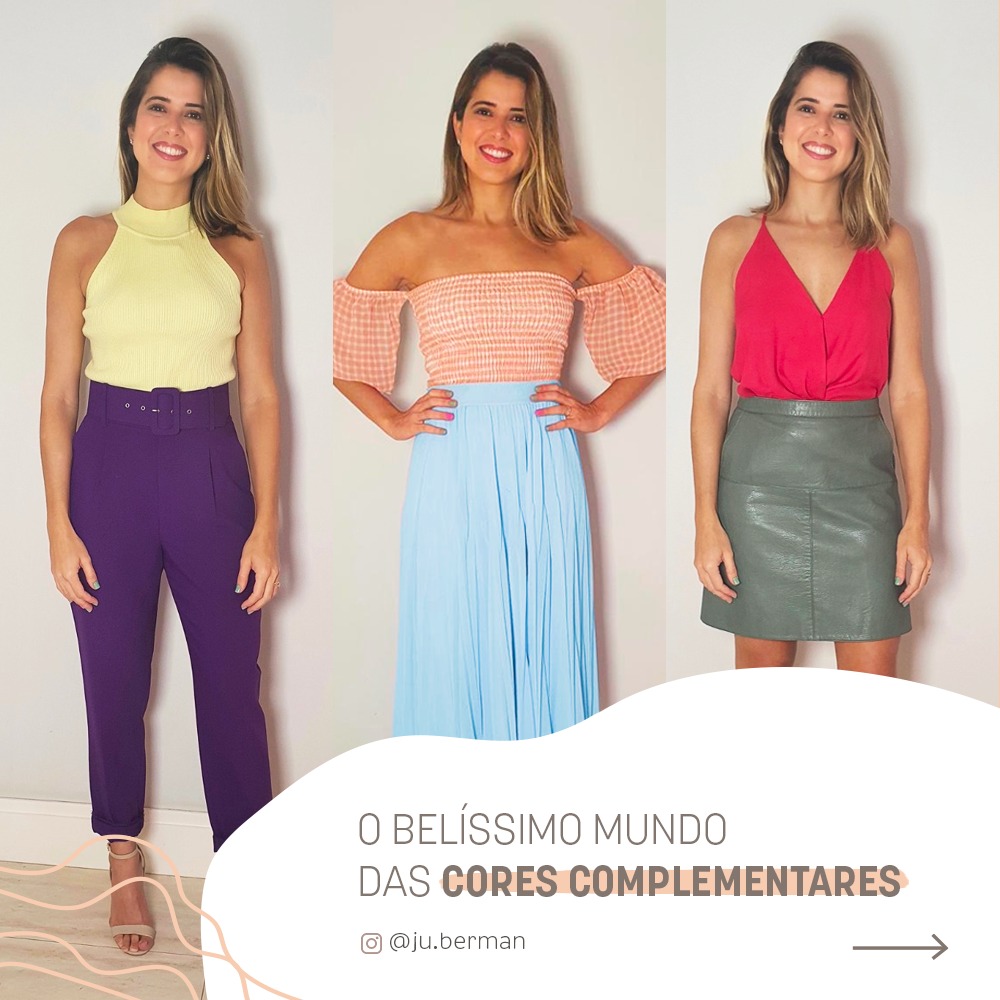 Hoje o assunto é o belíssimo mundo das cores complementares! E, para isso, eu montei três looks com cores complementares para vocês se inspirarem e começarem a colorir a vida de vocês.