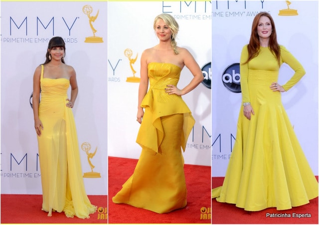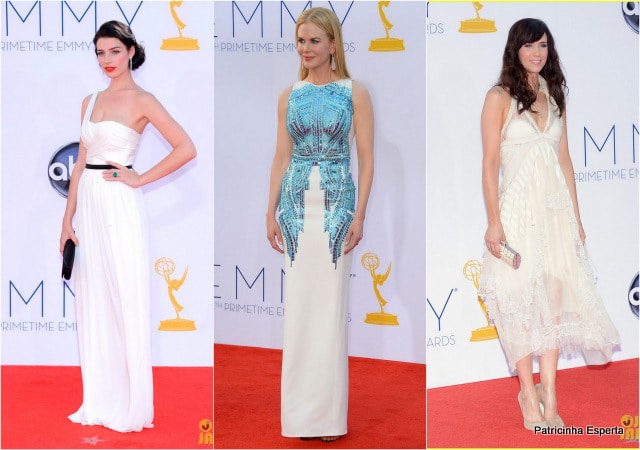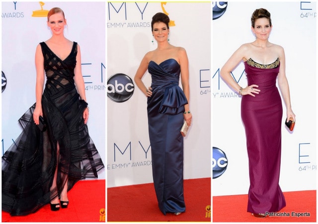 O primeiro vestido não é, evidentemente, o tipo adequado pra ir a uma festa como o Emmy. O segundo ficou estranho no corpo  e, pior, machucado. O terceiro é bonito, mas apertou demais a cintura e fez os seios saltarem. Ou seja, não valorizou!