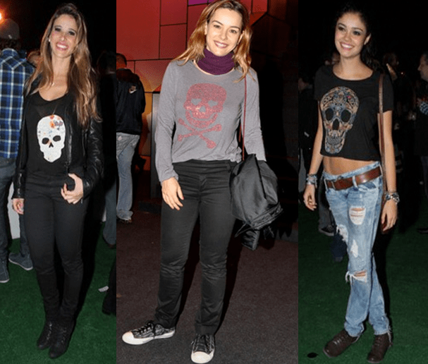 A “caveirinha” invadiu a moda. E está em todos os lugares ultimamente, brincos, anéis, colares, blusas, clutches, vestidos, saias, e até calças.