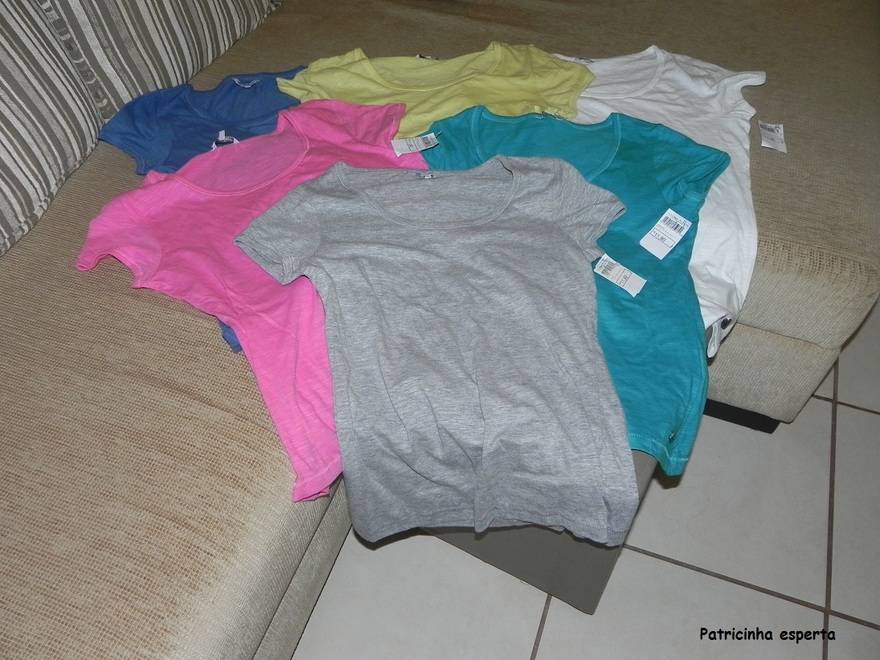 E logo na minha frente, como que por mágica…rsrsrs, aparece uma daquelas banquinhas que eles deixam propositalmente com algumas peças em promoção, cheia de blusinhas basiquinhas de várias cores lindinhas. O melhor de tudo foi o preço, quase caí pra trás R$11,90 cada, dá pra acreditar???