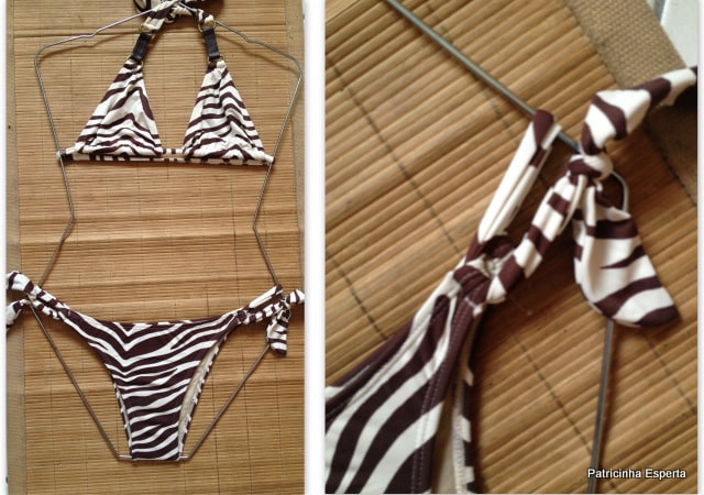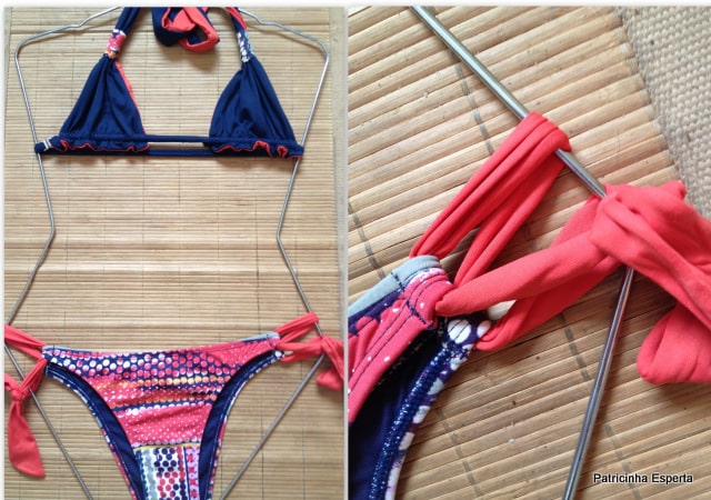 O primeiro biquíni é feito com um tecido molinho (não sei o nome!), que não marca de jeito nenhum, não aperta as laterais e se molda ao corpo.