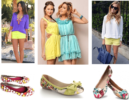 - Em relação às blusas, como a proposta é um estilo informal, o mais indicado são as blusinhas mais justas, ou regatinhas, podendo combinar a blusinha com uma das cores da estampa da sapatinha.