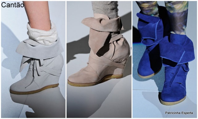 Não vi botas extra longas, mas as ankle boots e as botas um pouco mais altas, com saltos pesados, de couro croco e camurça, estavam presentes, o que é ótimo pois elas são bem mais usáveis e versáteis.