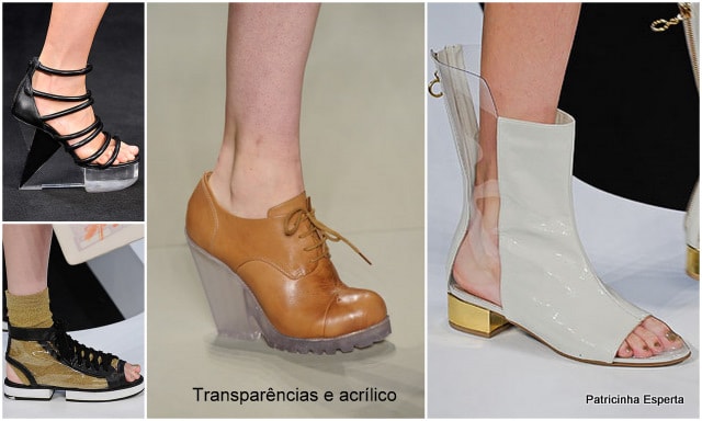 Saltos de acrílico, oxfords, transparências, verniz, franjas, bico de metal, estampados, abotinados, saltos coloridos, bordados, pedrarias e amarrações: tudo isso apareceu nos desfiles do Fashion Rio.