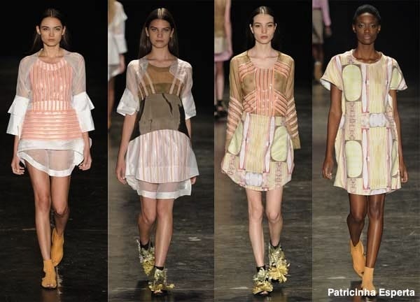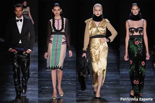 O desfile contou também com a parte de alfaiataria, com uma mescla de sarja, lãs e transparência nas rendas. A cartela de cores foi composta de tons de preto, vermelho, caqui, azul e verde-militar.
