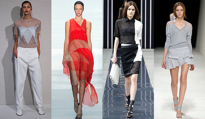 A dica de “mostrando pele” através de projetos para 2015 não é obscurecida pelo laço tradicional ou seda transparente, mas sim uma série de tecidos totalmente modificados que parecem uma fusão de redes e bordados. Diversas marcas lançaram uma série de inúmeros tecidos e estampas impressas, e vestidos inspirados em crochê, que deixaram pouco para a imaginação, peças essencialmente femininas que foram invadidas com babados de um tecido híbrido.