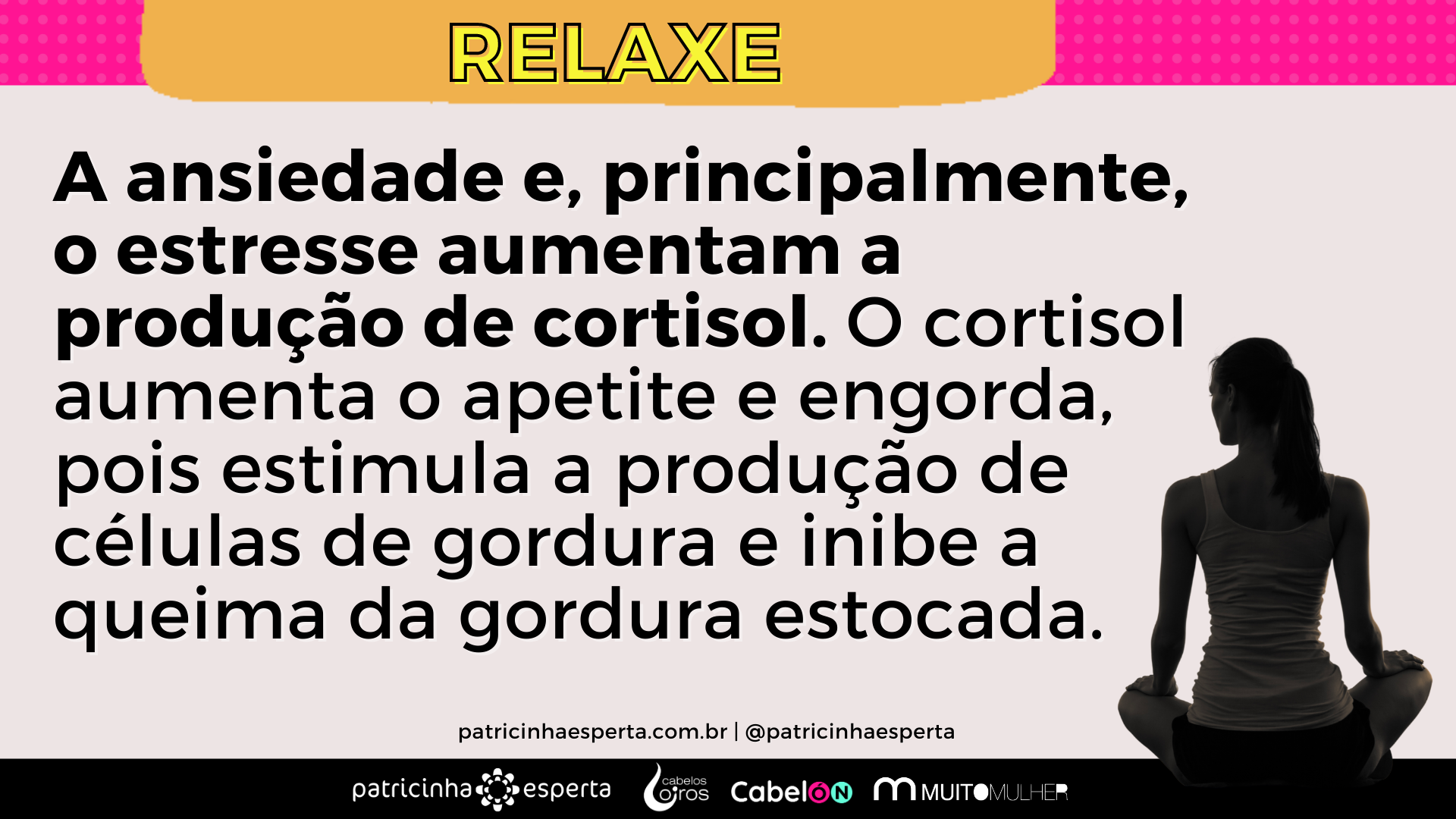 A ansiedade e, principalmente, o estresse aumentam a produção de cortisol. O cortisol aumenta o apetite e engorda, pois estimula a produção de células de gordura e inibe a queima da gordura estocada.