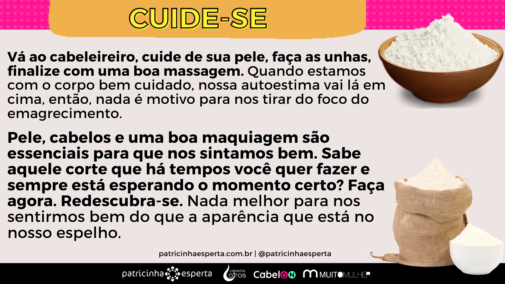 Pele, cabelos e uma boa maquiagem são essenciais para que nos sintamos bem. Sabe aquele corte que há tempos você quer fazer e sempre está esperando o momento certo? Faça agora. Redescubra-se. Nada melhor para nos sentirmos bem do que a aparência que está no nosso espelho.