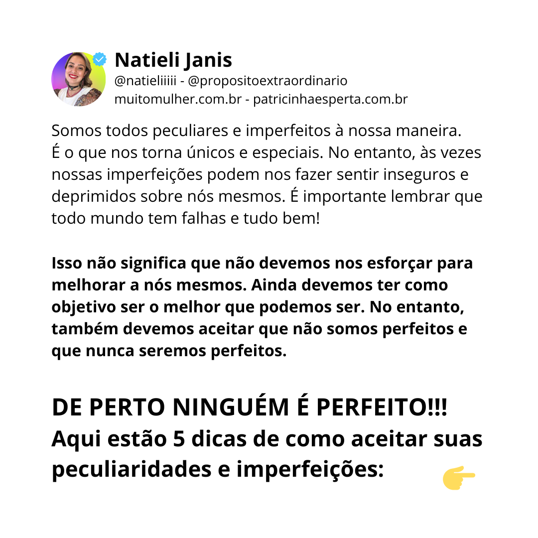 Aqui estão 5 dicas de como aceitar suas peculiaridades e imperfeições: