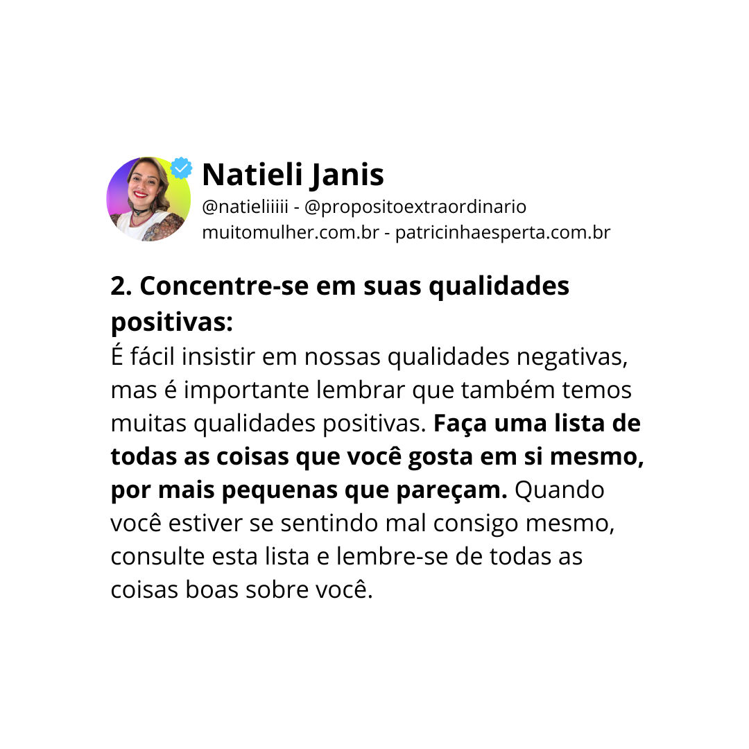 2. Concentre-se em suas qualidades positivas: