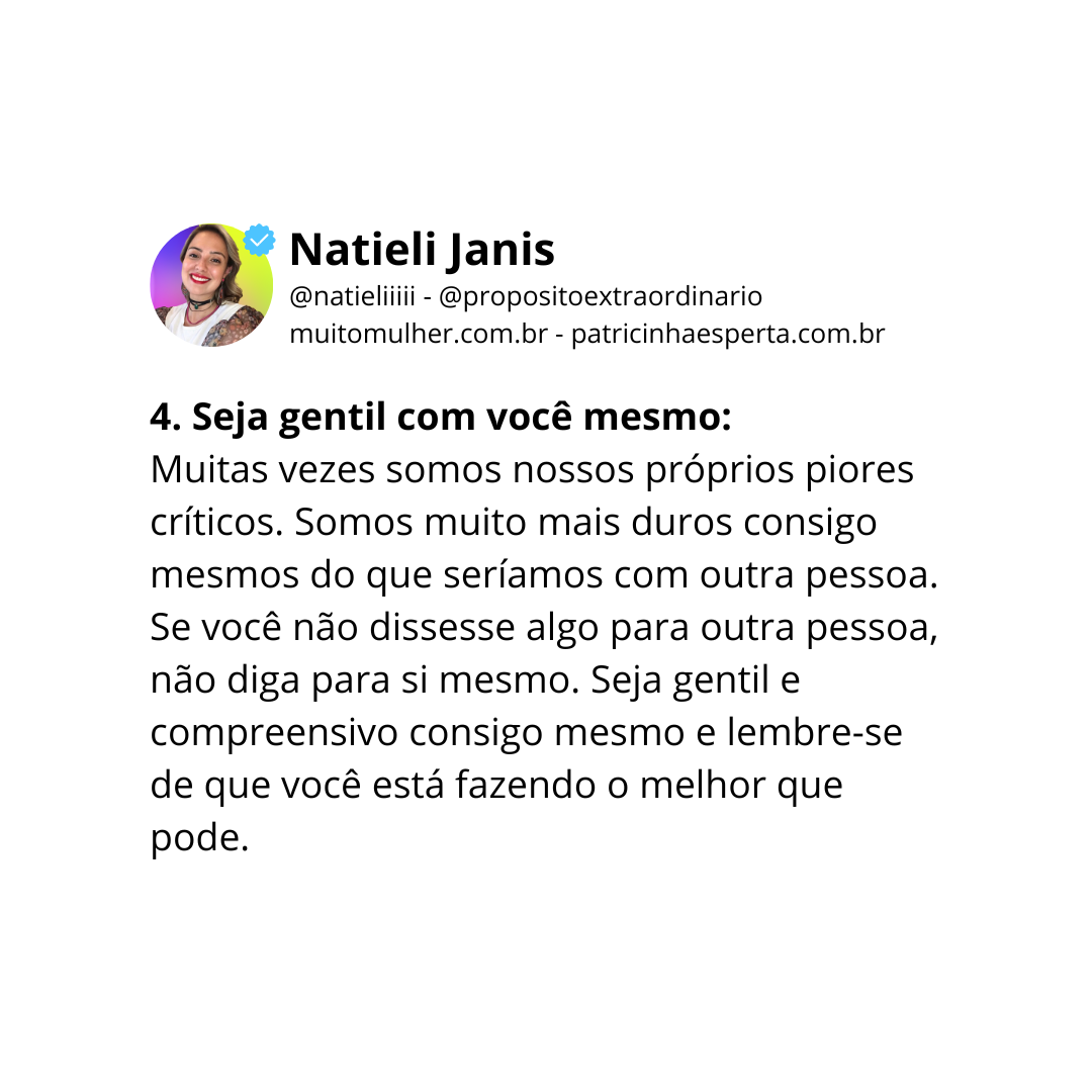 4. Seja gentil com você mesmo: