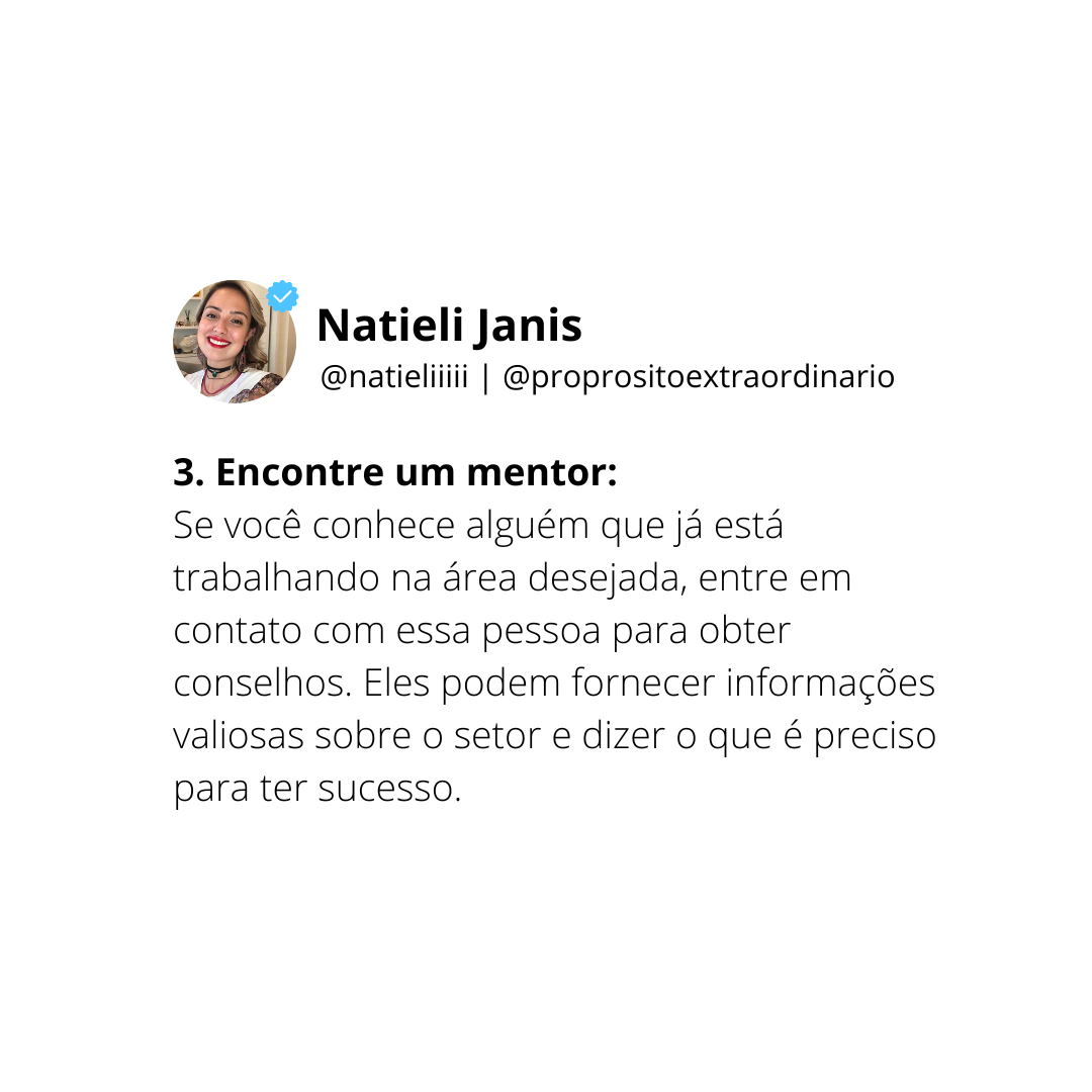 Se você conhece alguém que já está trabalhando na área desejada, entre em contato com essa pessoa para obter conselhos. Eles podem fornecer informações valiosas sobre o setor e dizer o que é preciso para ter sucesso.