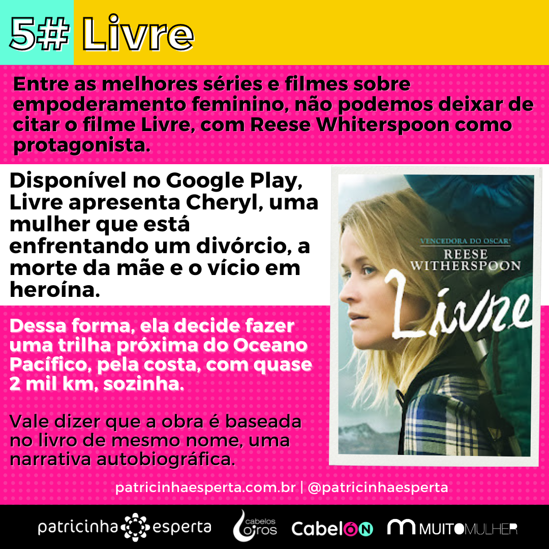 Entre as melhores séries e filmes sobre empoderamento feminino, não podemos deixar de citar o filme Livre, com Reese Whiterspoon como protagonista.