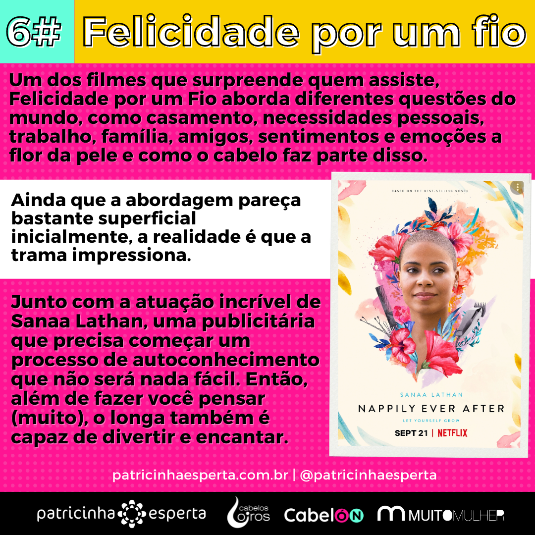 Um dos filmes que surpreende quem assiste, Felicidade por um Fio aborda diferentes questões do mundo, como casamento, necessidades pessoais, trabalho, família, amigos, sentimentos e emoções a flor da pele e como o cabelo faz parte disso.