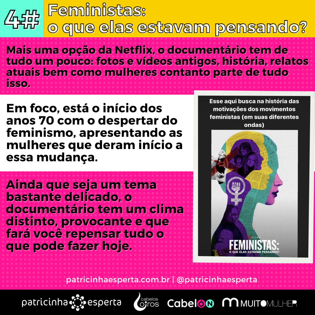 Mais uma opção da Netflix, o documentário tem de tudo um pouco: fotos e vídeos antigos, história, relatos atuais bem como mulheres contanto parte de tudo isso.