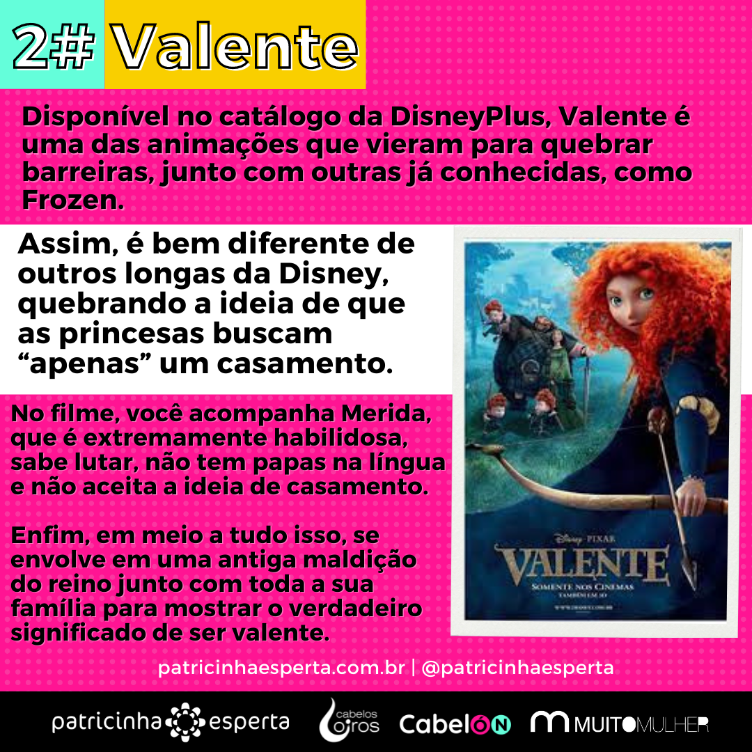 Disponível no catálogo da DisneyPlus, Valente é uma das animações que vieram para quebrar barreiras, junto com outras já conhecidas, como Frozen.