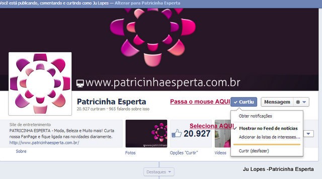 Na Fan Page no PE, passe o mouse onde tem a opção “Curtir”. Aparece uma janelinha de opções, daí vocês clicam em “Obter Notificações” e “Mostrar no Feed de Notícias”. CLIQUE AQUI.