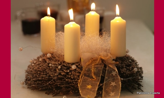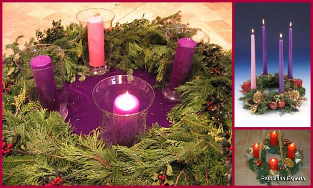 As coroas ou guirlandas do advento devem ser feitas um mês antes do natal, sendo que em cada domingo deve ser acendida uma vela. Tradicionalmente, três velas são na cor púrpura, que é a cor da espiritualidade, e uma é rosa, que é a usada no terceiro domingo, que é o dia de celebrar a alegria. Eu faço a minha guirlando com velas verdes e vermelhas. Vermelho porque é a cor de maior sorte e simboliza a vida. Verde porque é a cor da esperança e da abundância.