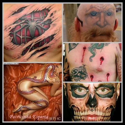 É claro que já existem técnicas dermatológicas que conseguem apagar a tatuagem, mas dependendo do tamanho do desenho, das cores, da área e do tipo de pele, podem deixar cicatrizes e manchas, o que é bem pior. Então, meninas, pensem bem antes de fazer uma tatuagem. Reflitam sobre o significado, a importância do desenho ou da frase, o local, se informem sobre o profissional, se ele usa produtos descartáveis, tintas de qualidade e se o trabalho dele é realmente bom.
