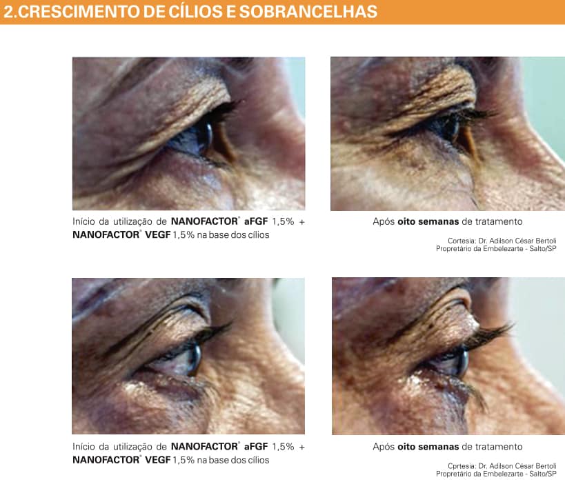Antes e depois tratamento com o fluido crescimento cílios e sobrancelhas