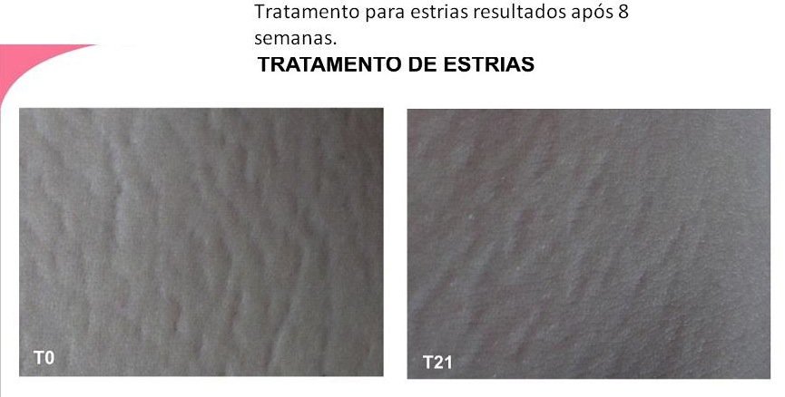 Antes e depois tratamento de estrias brancas após 8 semanas de uso