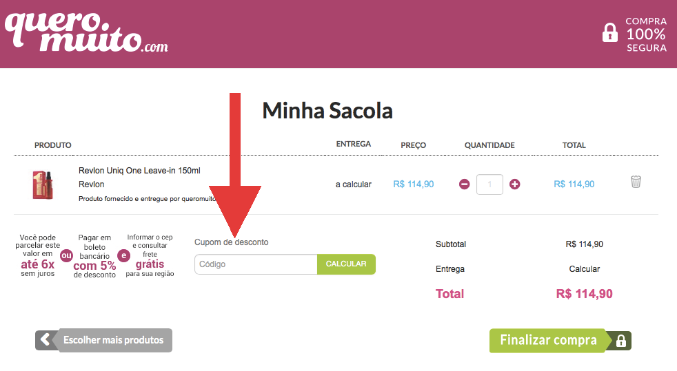Se você gostaria de comprar o Revlon Unique One, vamos oferecer um desconto% exclusivo para as leitoras do PatricinhaEsperta no valor de R$ 10,00. Na última etapa de pagamento, aparecerá o campo “Cupom de Desconto”, digite o código: UJUTMTEUFA