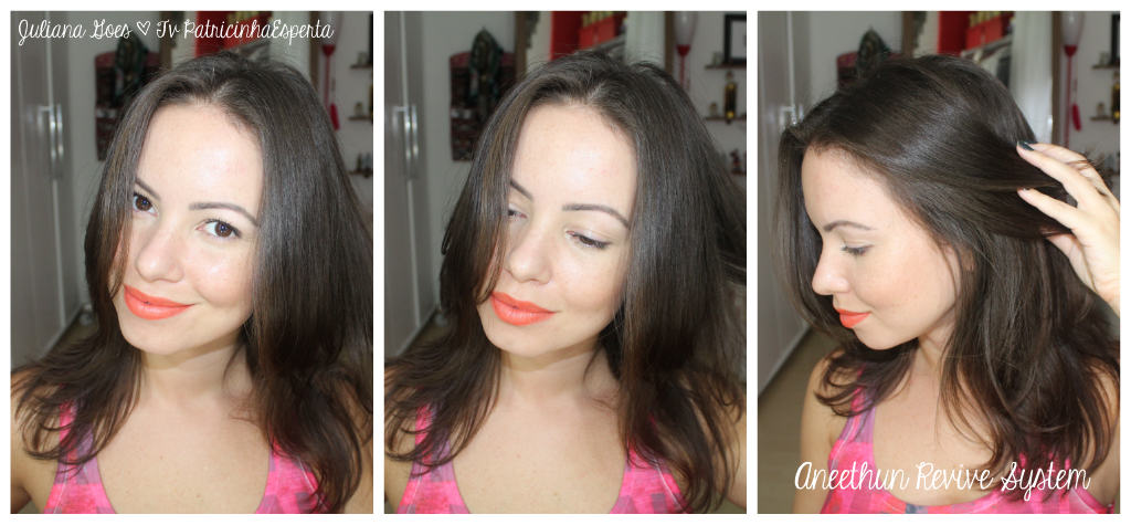 Vocês vão dar risada, mas dessa vez precisei de uma cobaia, minha querida mãe rsrs. Ela tem cabelo castanho, nunca abriu mão dos tons escuros, mas depende de tintura por causa dos fios brancos e retoca a raiz a cada 15 dias, que trabalheira, né?! Pois bem, coloquei ela para testar a linha completa por uns 2 meses. Resultado: não quer me devolver os produtos para eu usar também hahaha, ela gostou do efeito nutritivo, porque o cabelo dela é bem ressecado e da vivacidade da cor com o uso contínuo dos produtos.