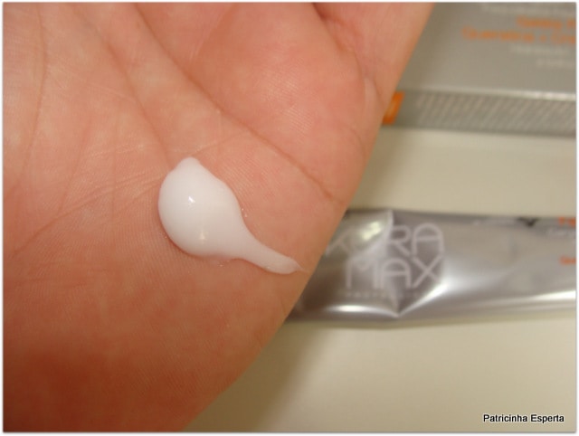 A embalagem é em forma de bisnaga, fácil de manusear.