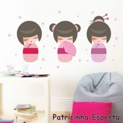 Então meninas , estou falando tudo isso especialmente para mostrar para vocês um motivo de adesivo de parede para decoração que eu achei e me encantei: kokeshi – as bonequinhas japonesas.